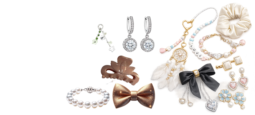 Material: Fabric-coated plastic/metal (bow), glass or resin stone, and alloy.