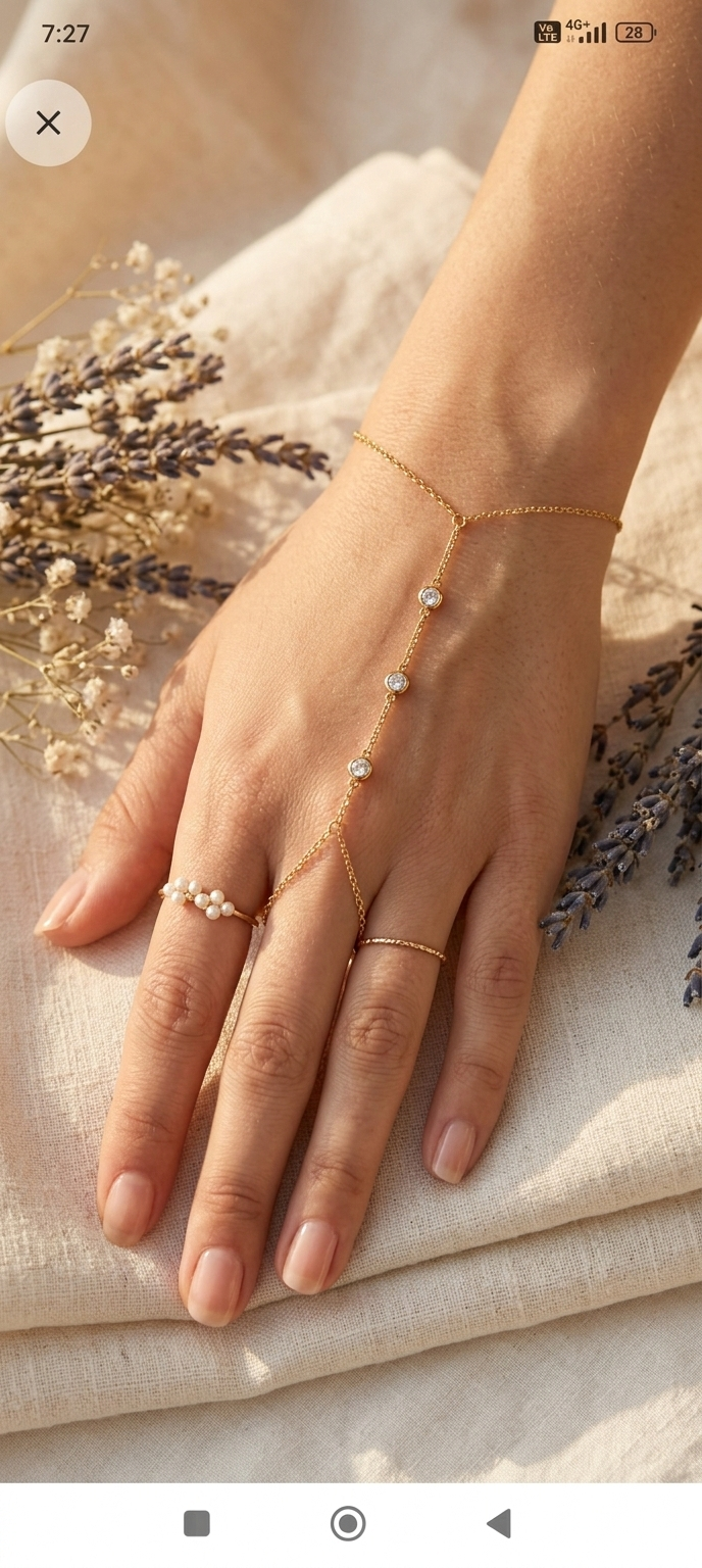 Key Features: Adjustable lobster clasp, tarnish-resistant, integrated finger-to-wrist design.