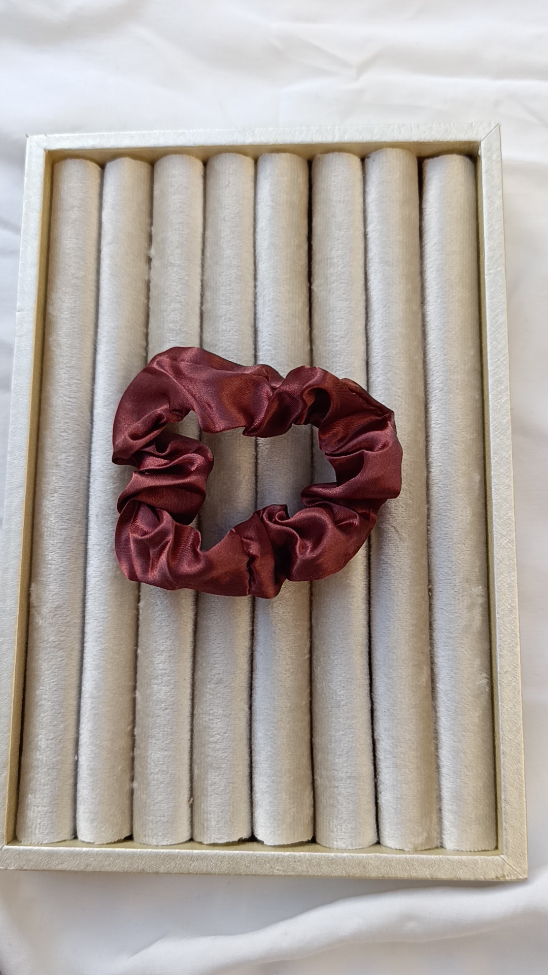 Description: This is a classic luxury staple. The deep burgundy satin has a high-density weave that creates a mirror-like shine. Satin is famous for reducing friction, preventing “frizz” and hair breakage.
