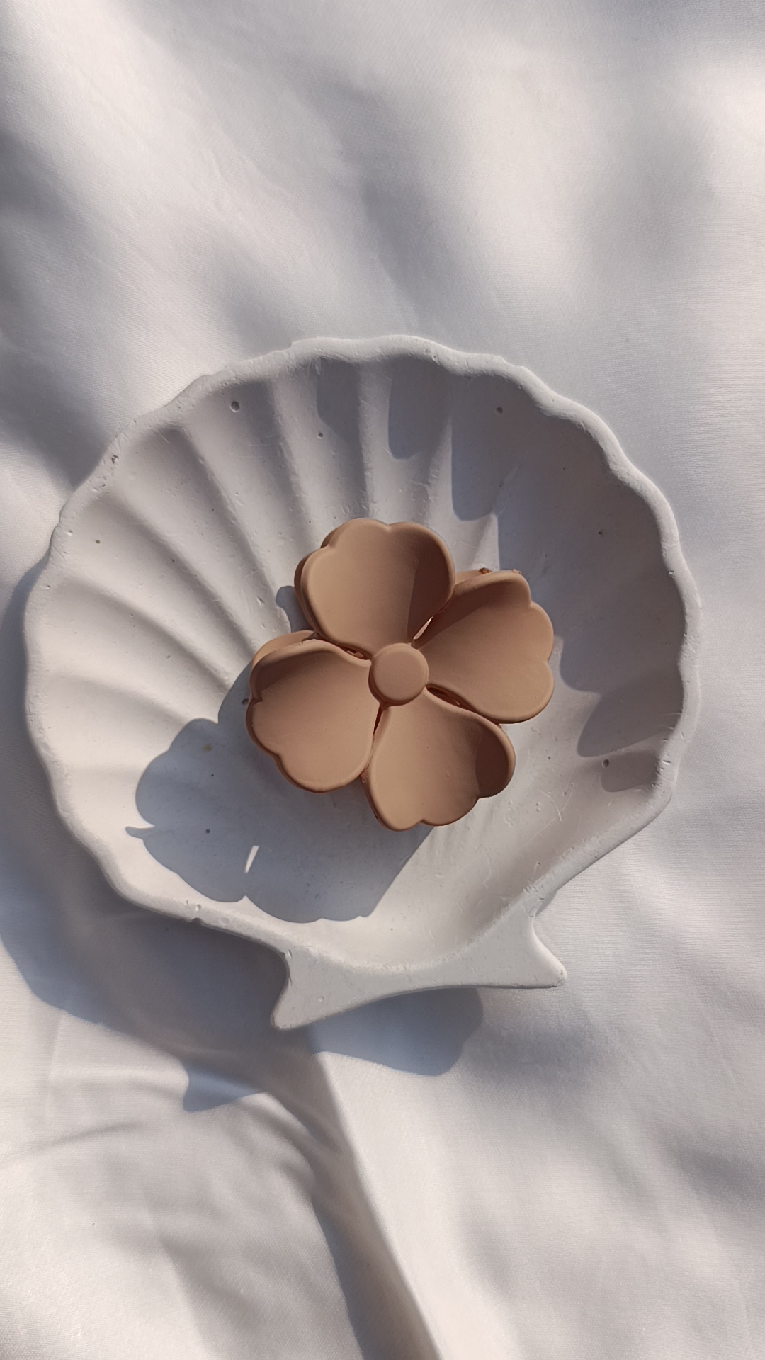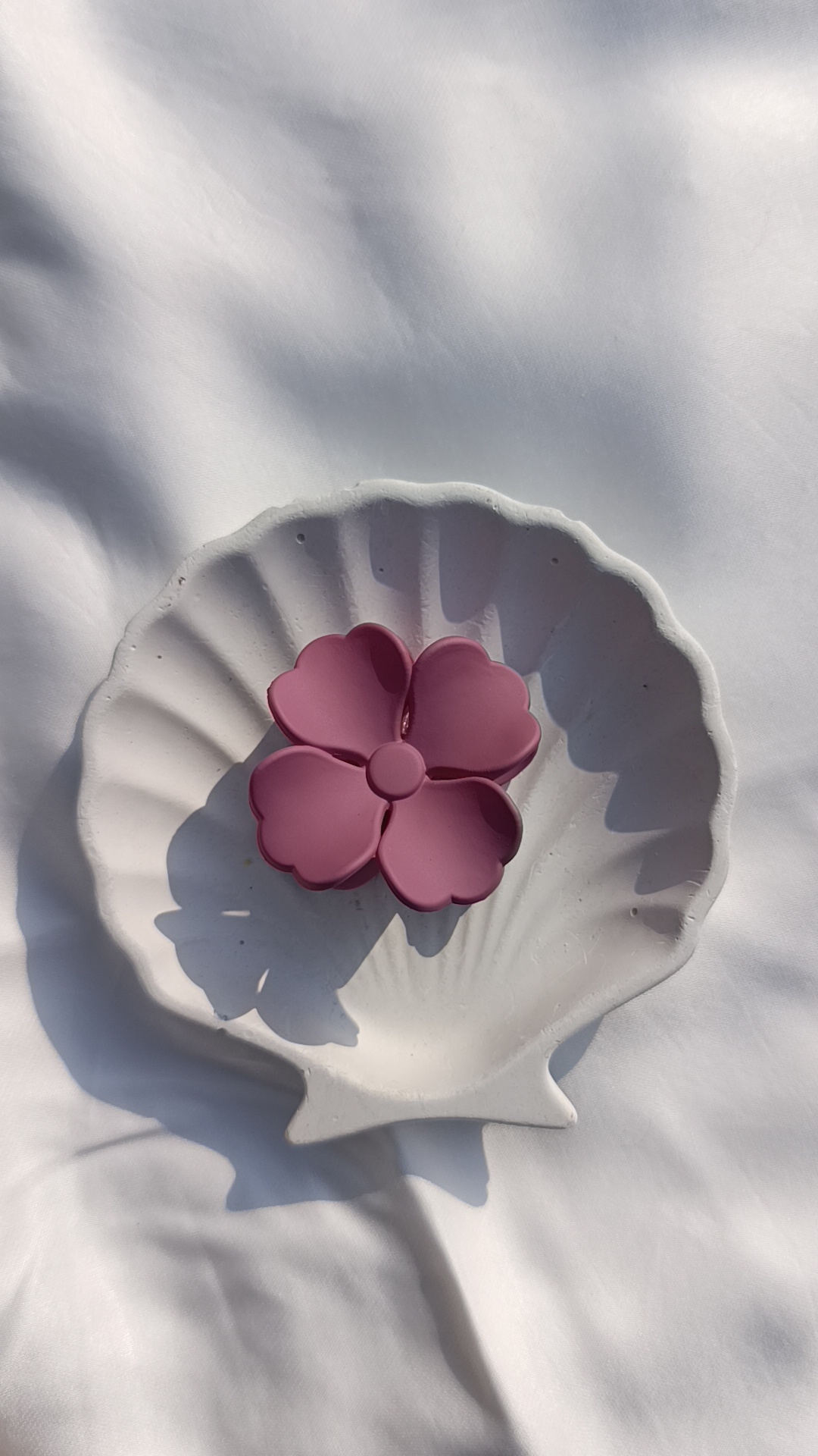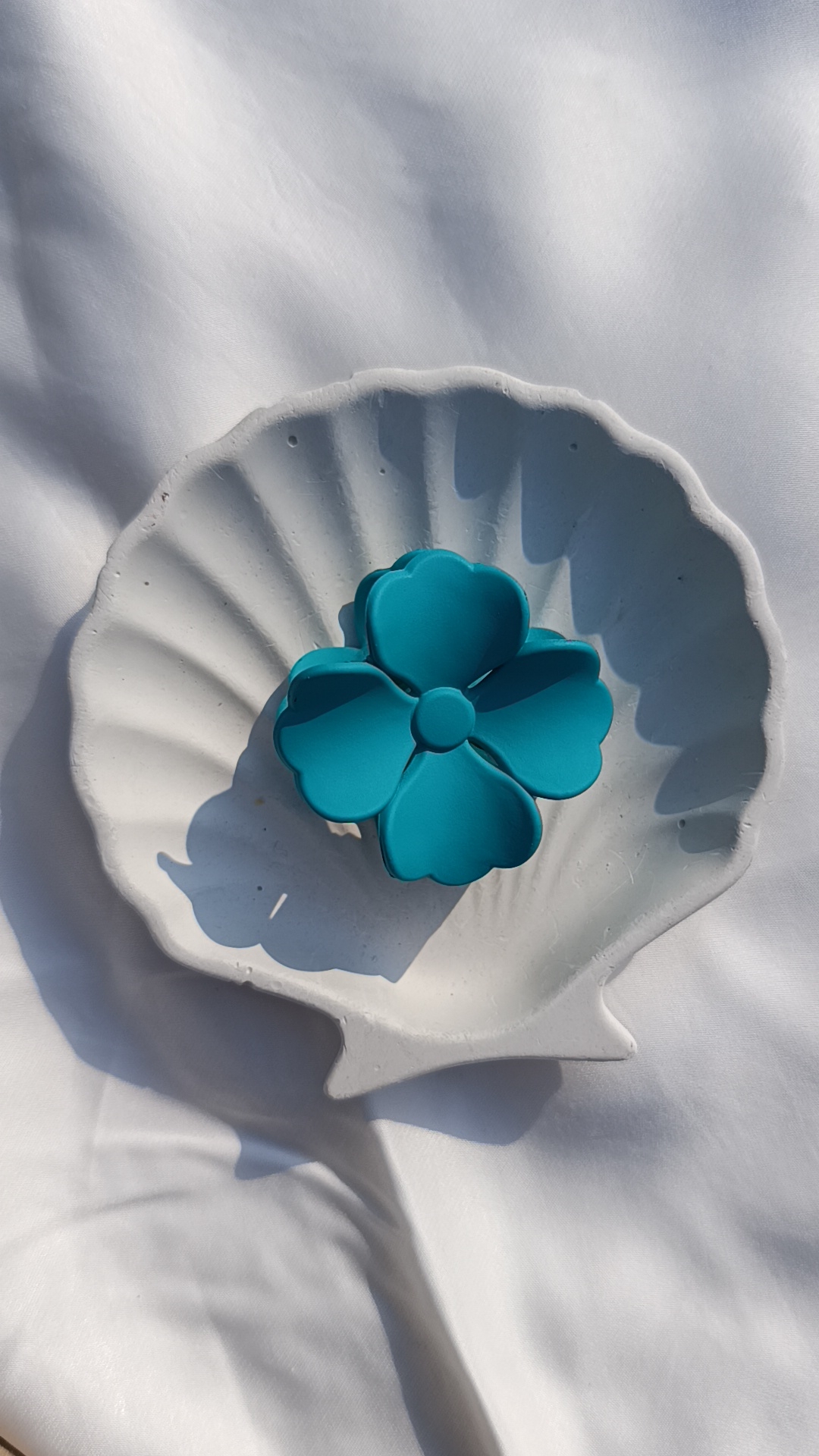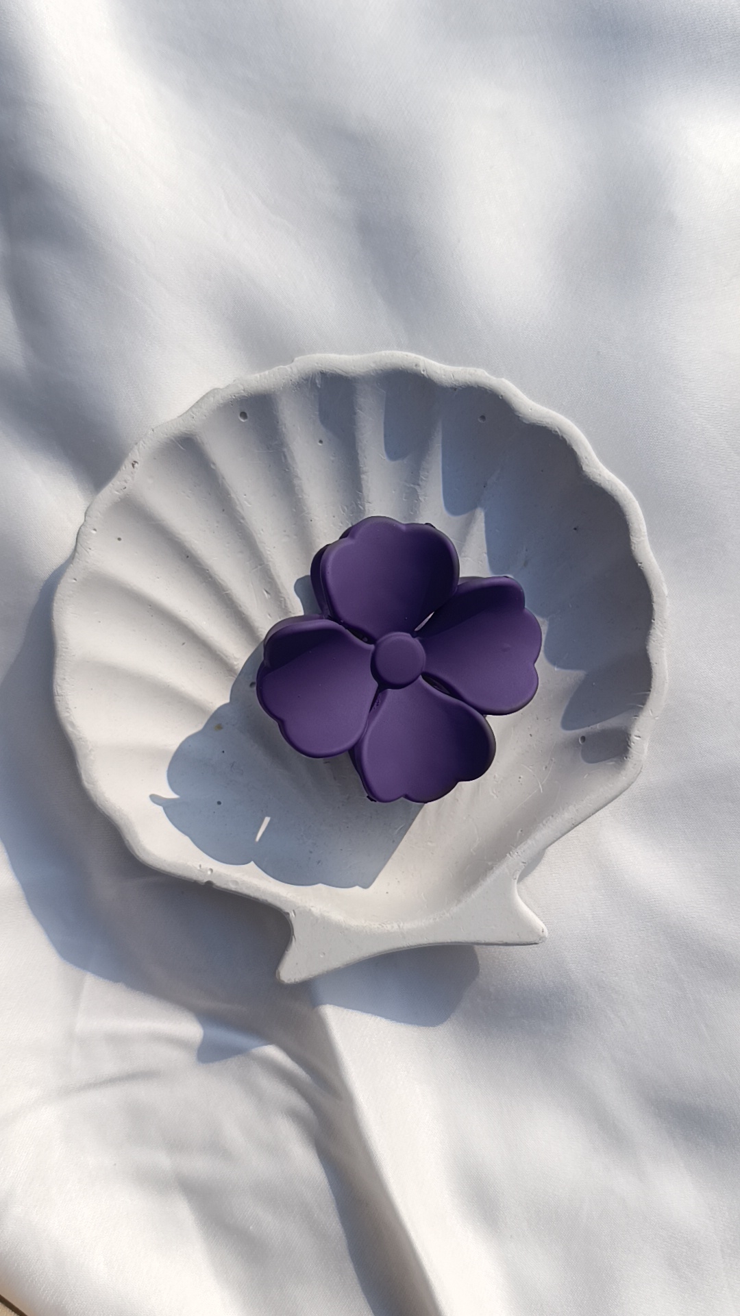 Description: A bold, matte-finish clip with distinctive scalloped-edge petals. The color provides a sophisticated pop of color, and the medium size is perfect for securing a full twist or bun.