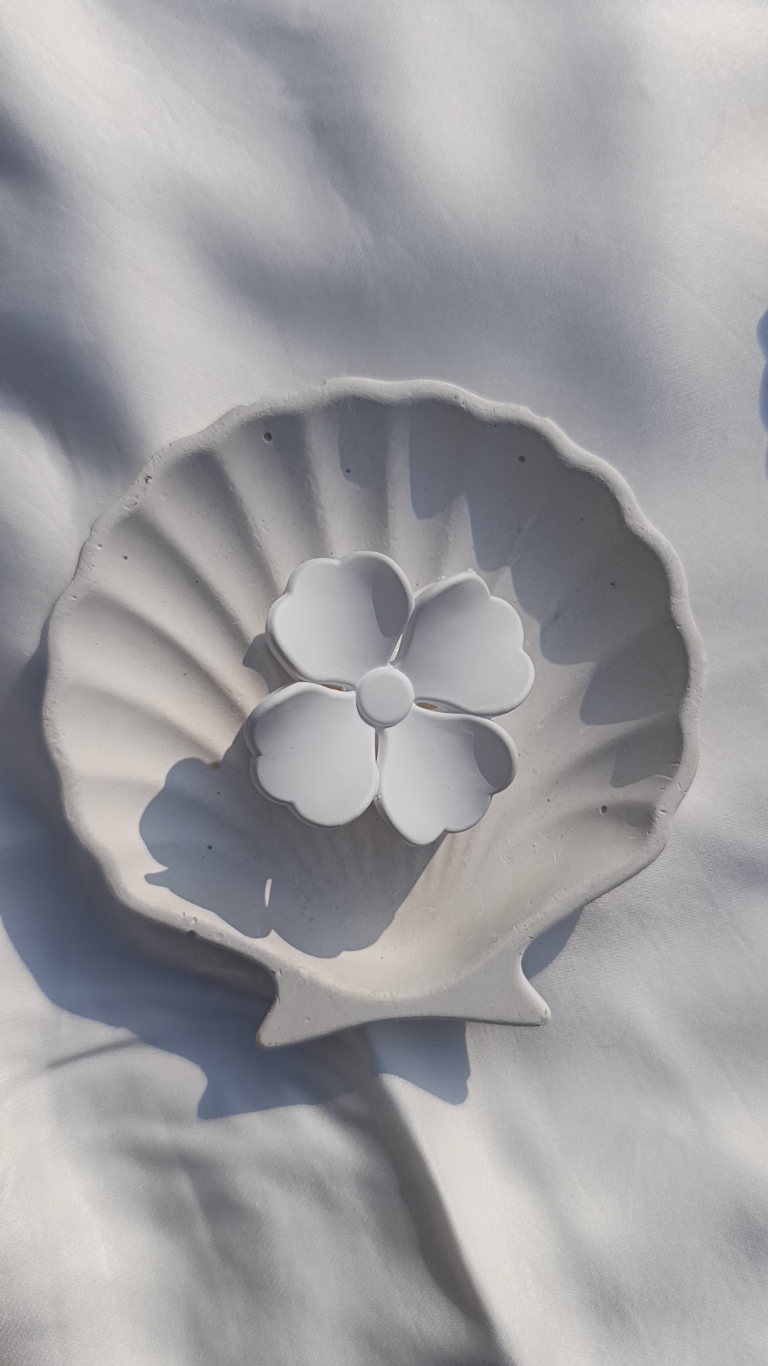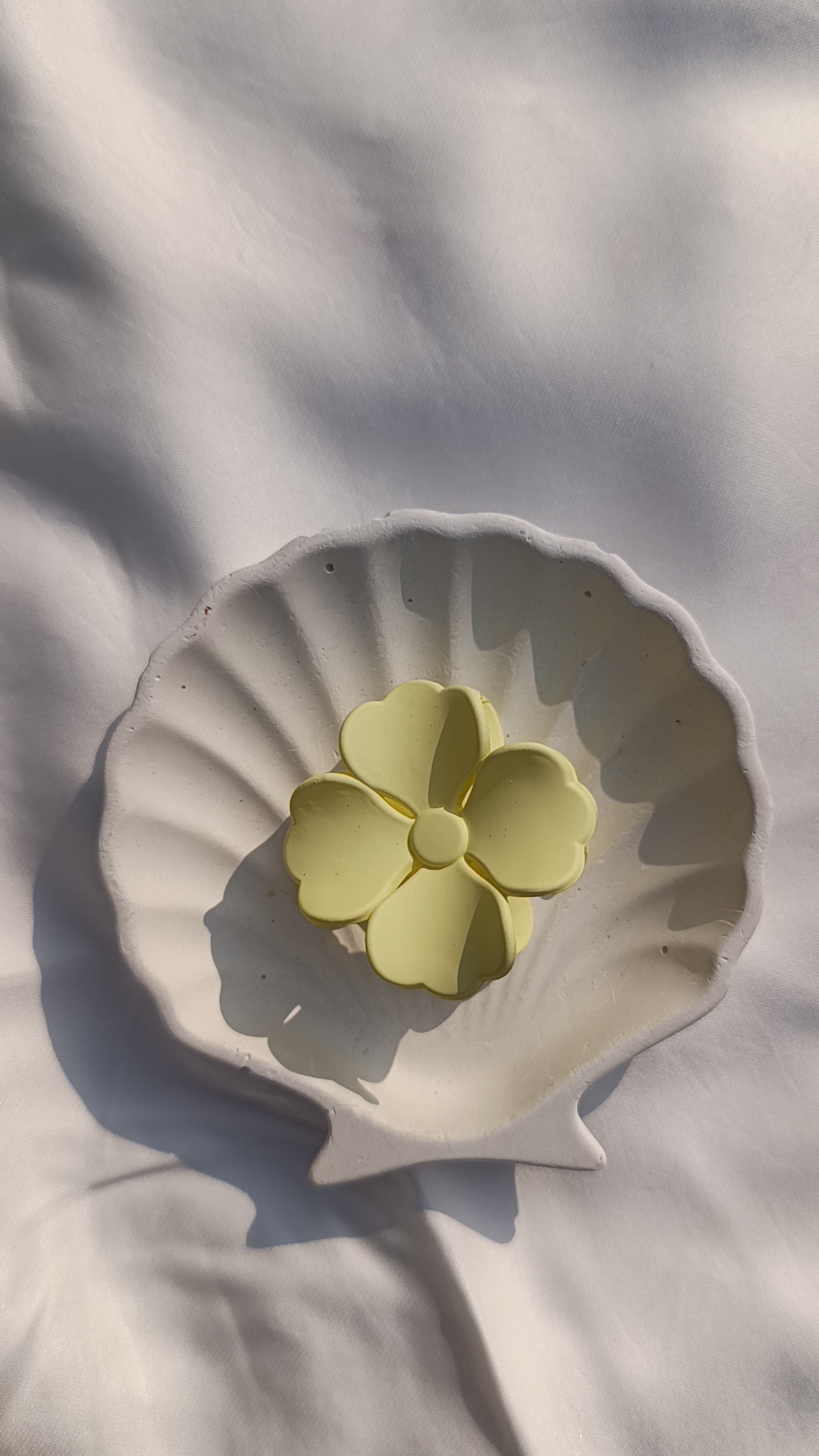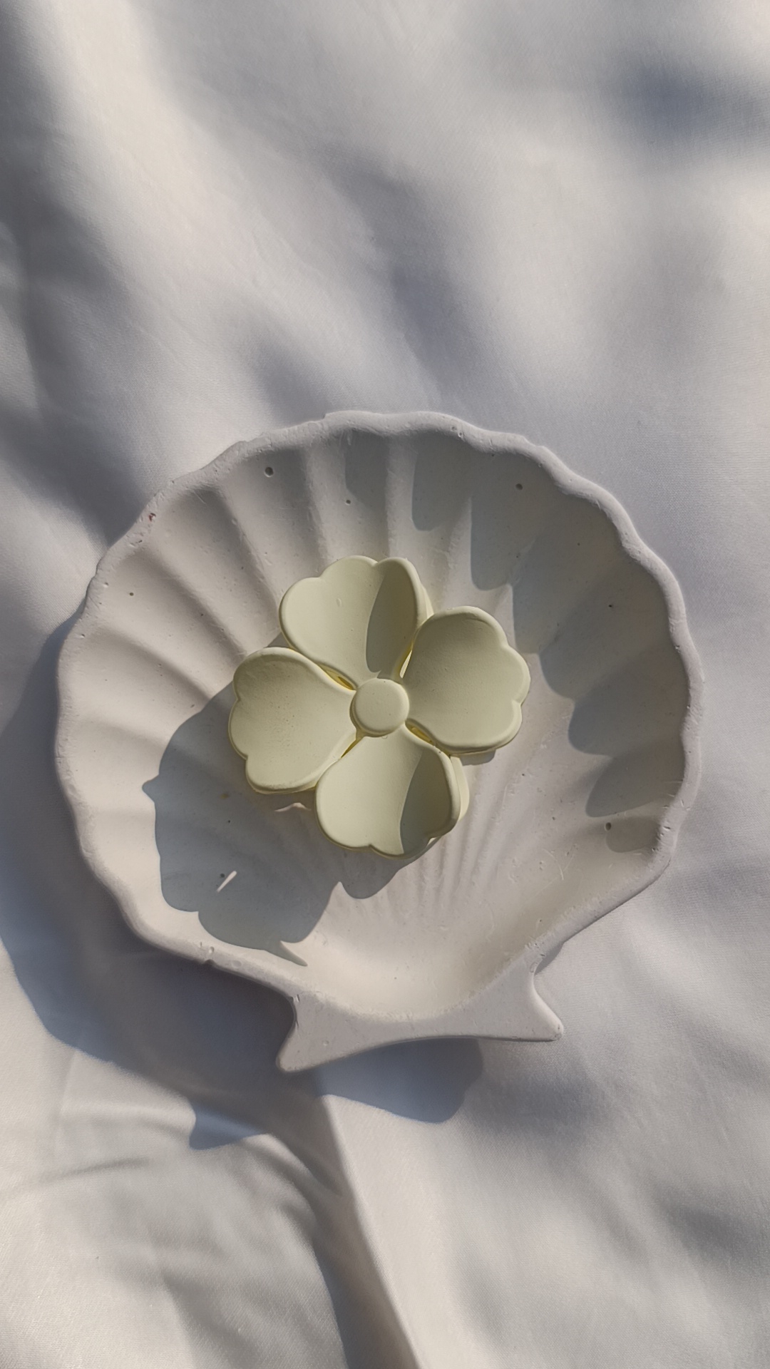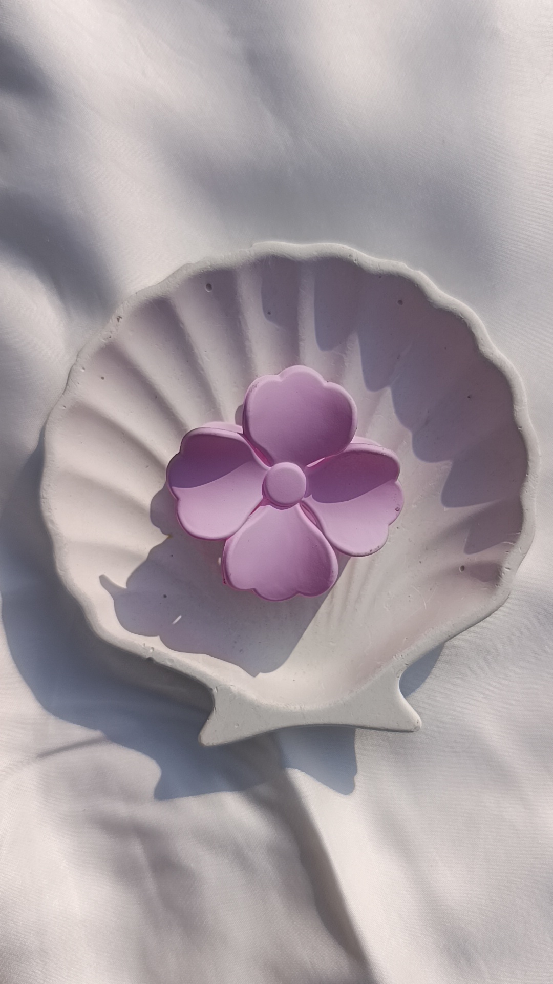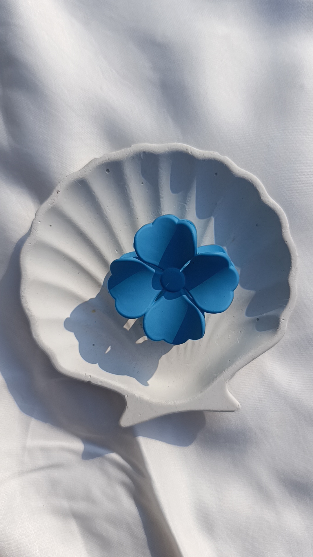 Description: A bold, matte-finish clip with distinctive scalloped-edge petals. The color provides a sophisticated pop of color, and the medium size is perfect for securing a full twist or bun.